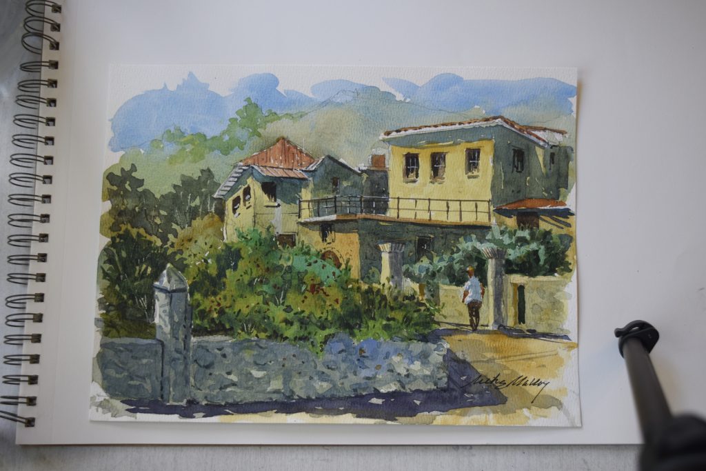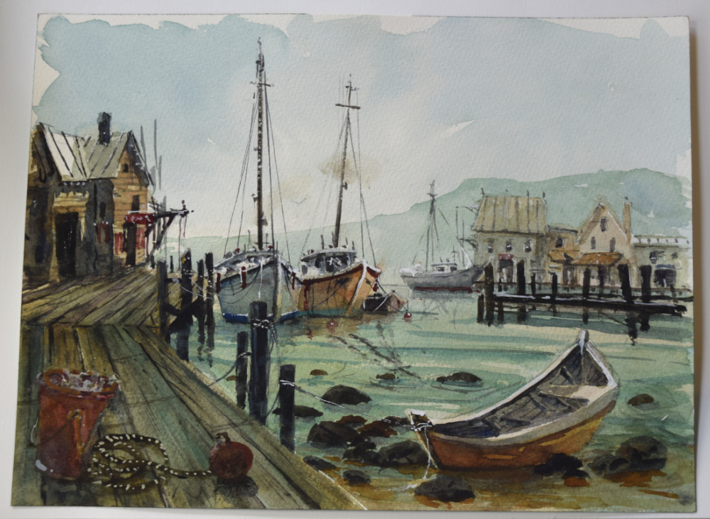 A final watercolor is always preceded by a smaller format full color study. These studies can be 9″x12″, 10″x14″ or 11″x15″. I have many onhand so I decided to reactivate my Etsy page and offer them for sale at the cut price of $40. There will always be listed 8 -10 paintings. I plan to rotate the offering each month.